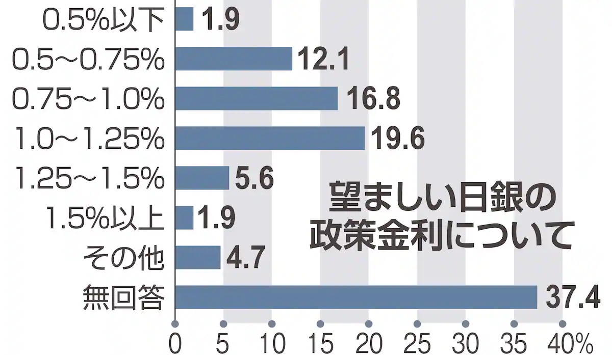 日本の主要企業「日銀の政策金利は1.0~1.25%、1ドル=140~149円が望ましい」が最多。120円未満が良いはゼロ