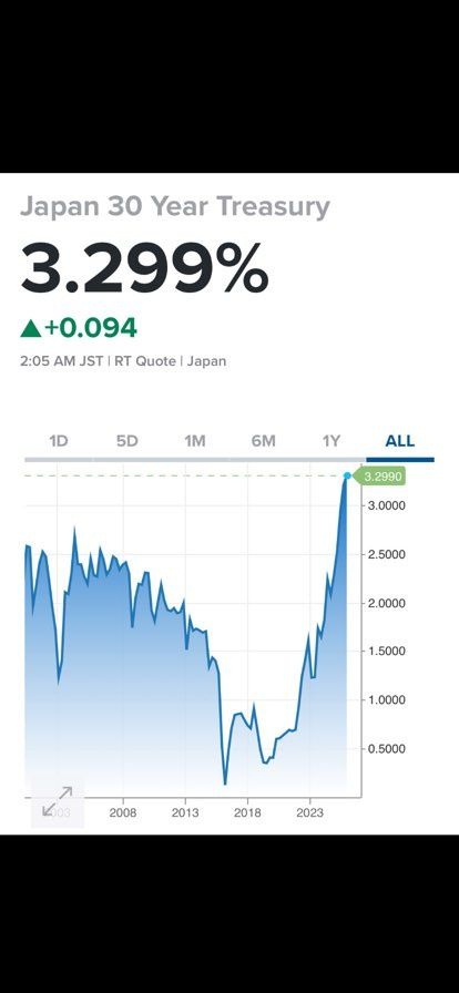 日本の30年国債暴落止まらず過去最高利回りの3.3%に。石破政権崩壊で財政拡大懸念高まる