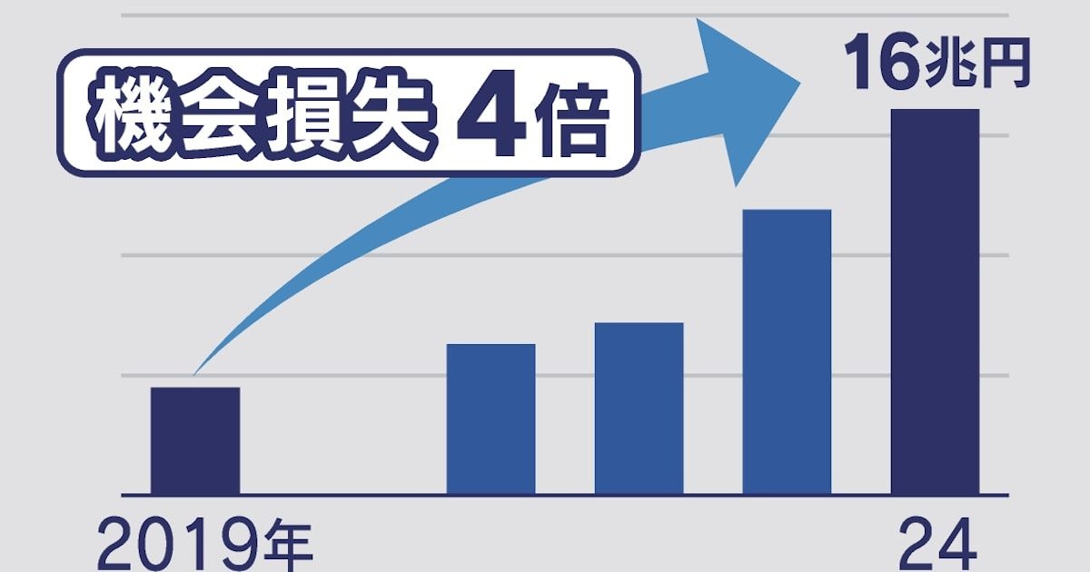 人手不足が日本の経済成長を脅かしている。日本経済新聞が日本総合研究所と人手不足で生じた機会損失を試算したところ、その規模は年16兆円に達した。新政権は「積極財政」を掲げるが、需要を喚起するだけでは経済は回らない。労働生産性の改善など多様な政策が欠かせない。
