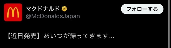 日本マクドナルド「"あいつ"が帰ってきます…」