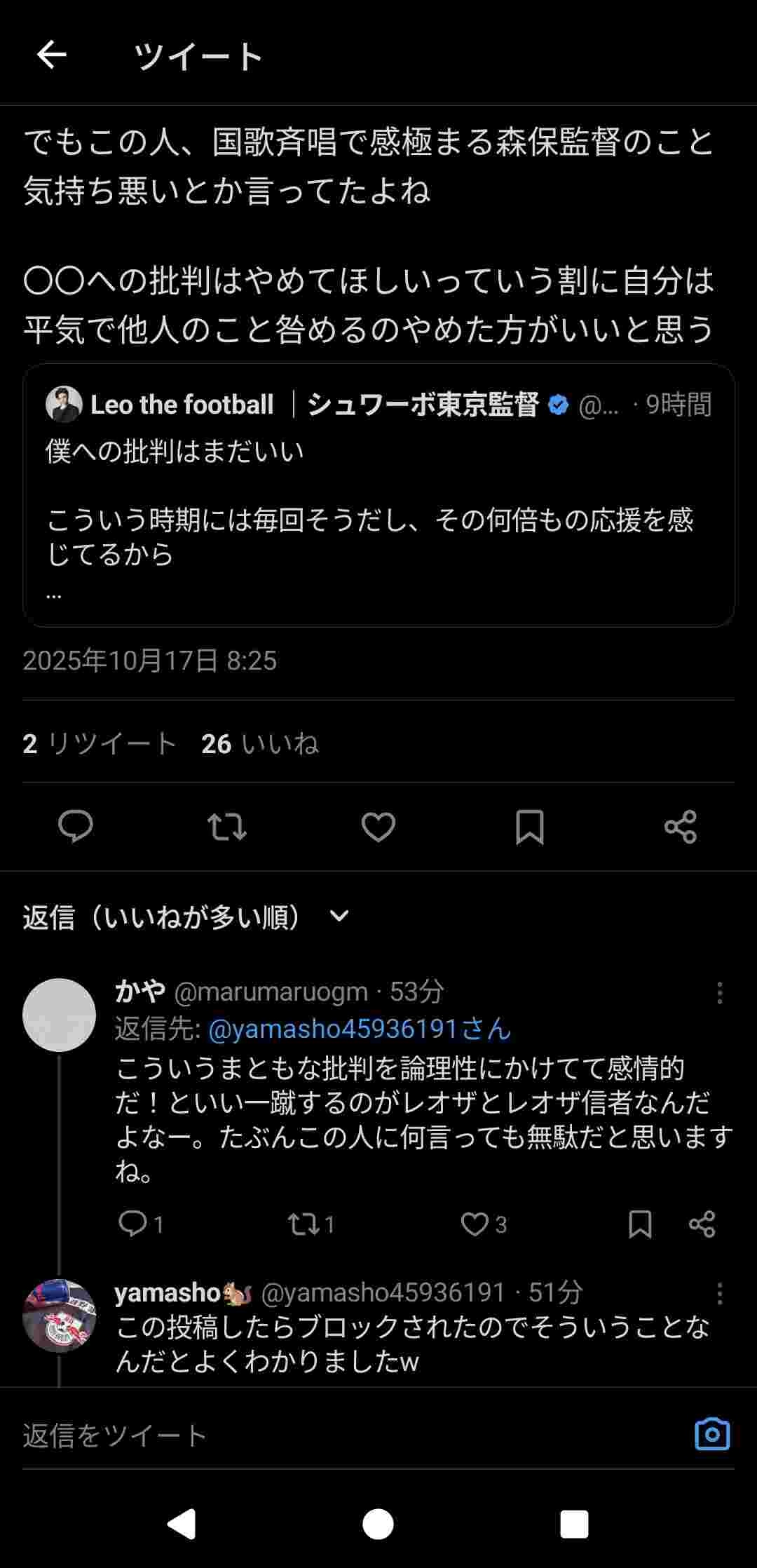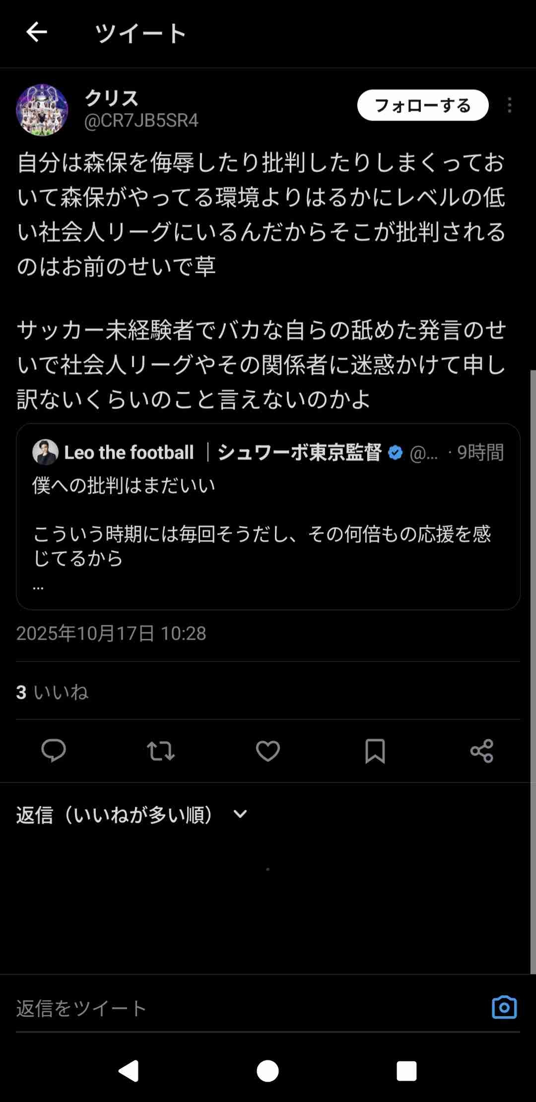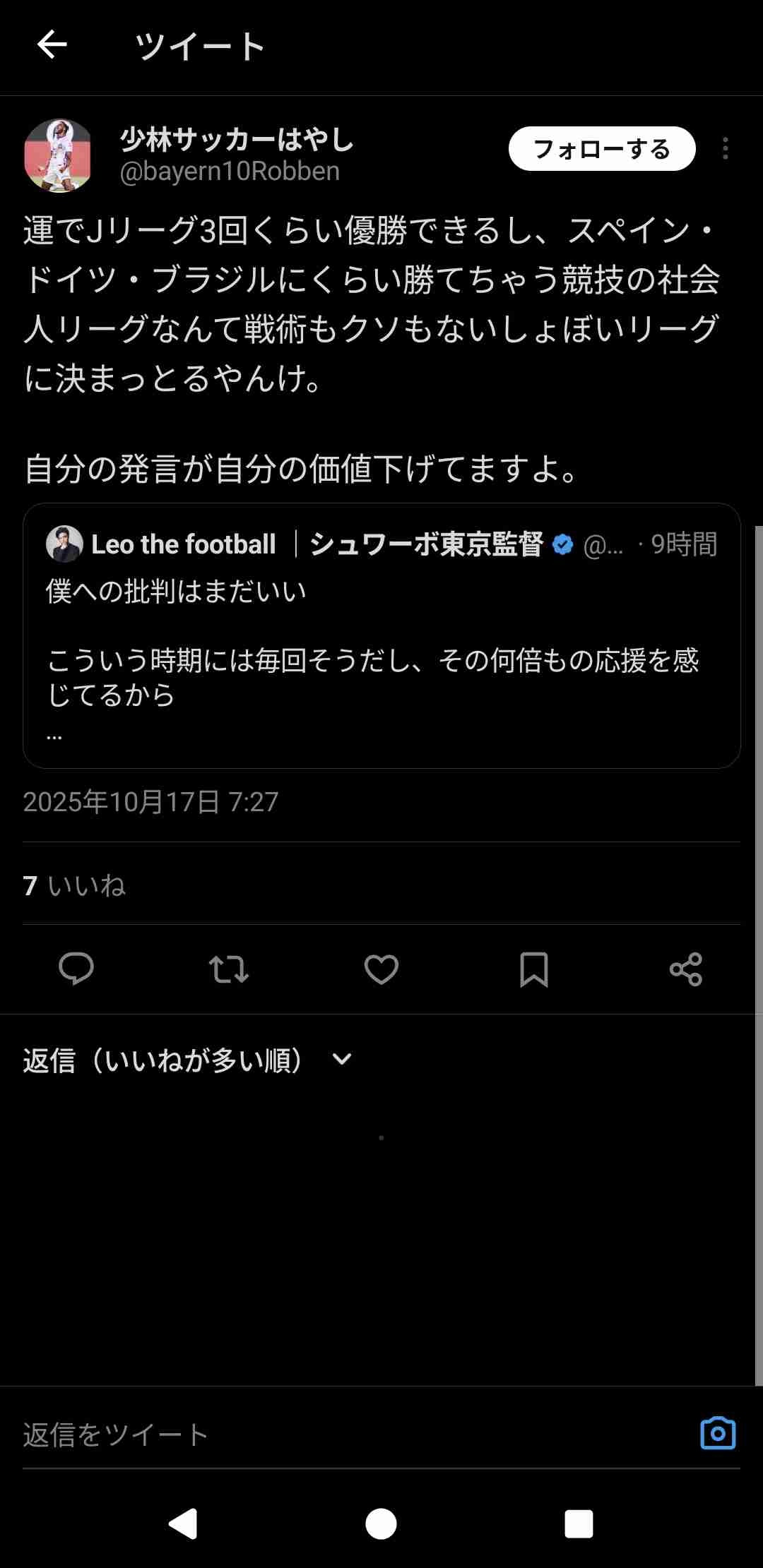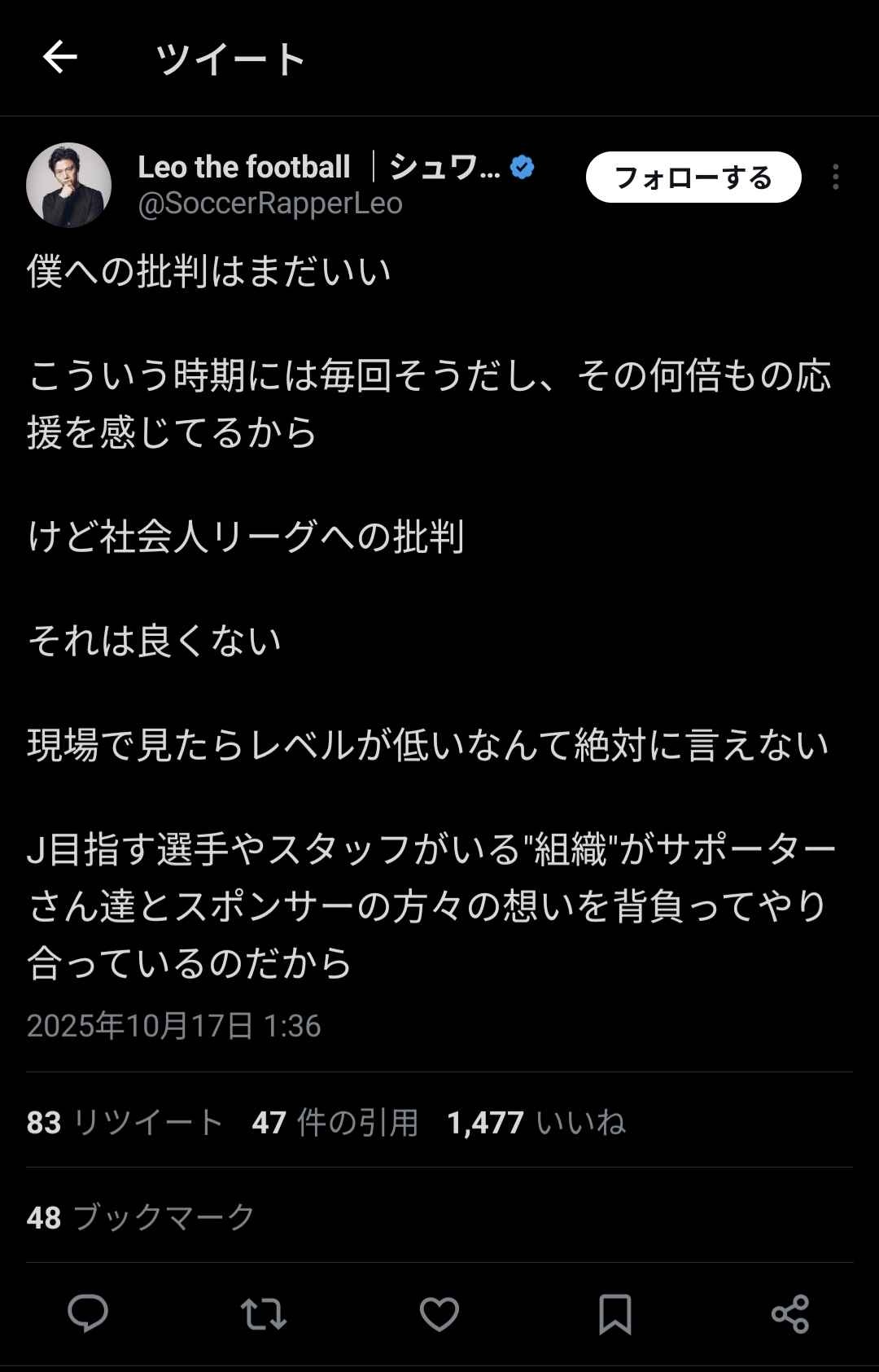 - レオザがどれだけクソだろうがこいつ憎しで見もしねえで社会人サッカー馬鹿にしてるアンチもやべえじゃん