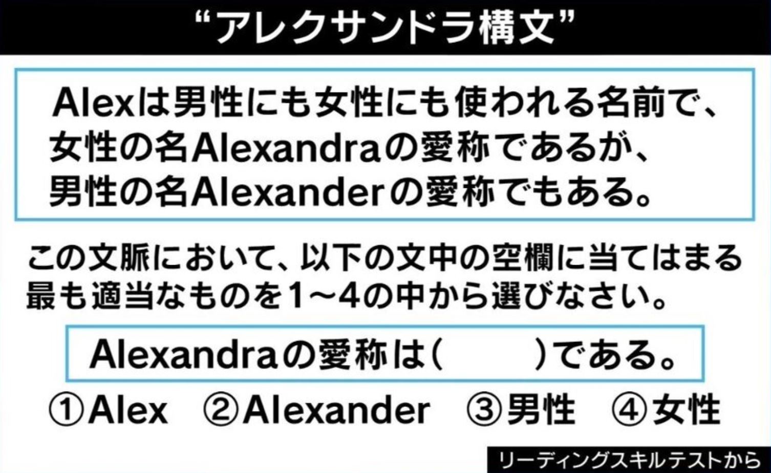 日本人、「文章が読めない」事が発覚。アレクサンドラ構文に手も足も出ない。