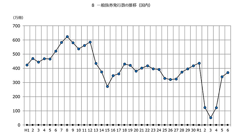 外務省は、2024年(1~12月)の旅券統計を発表した。これによると、国内における一般旅券の発行数(公用旅券を除く)は370万111冊で、前年比8.8%増となった。