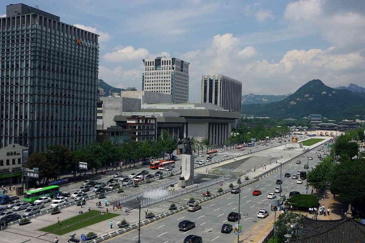 皇居の東側、東京都心のど真ん中を貫く道幅がこれ日本より首都一極集中で過密なソウル都心の方がはるかに広い
