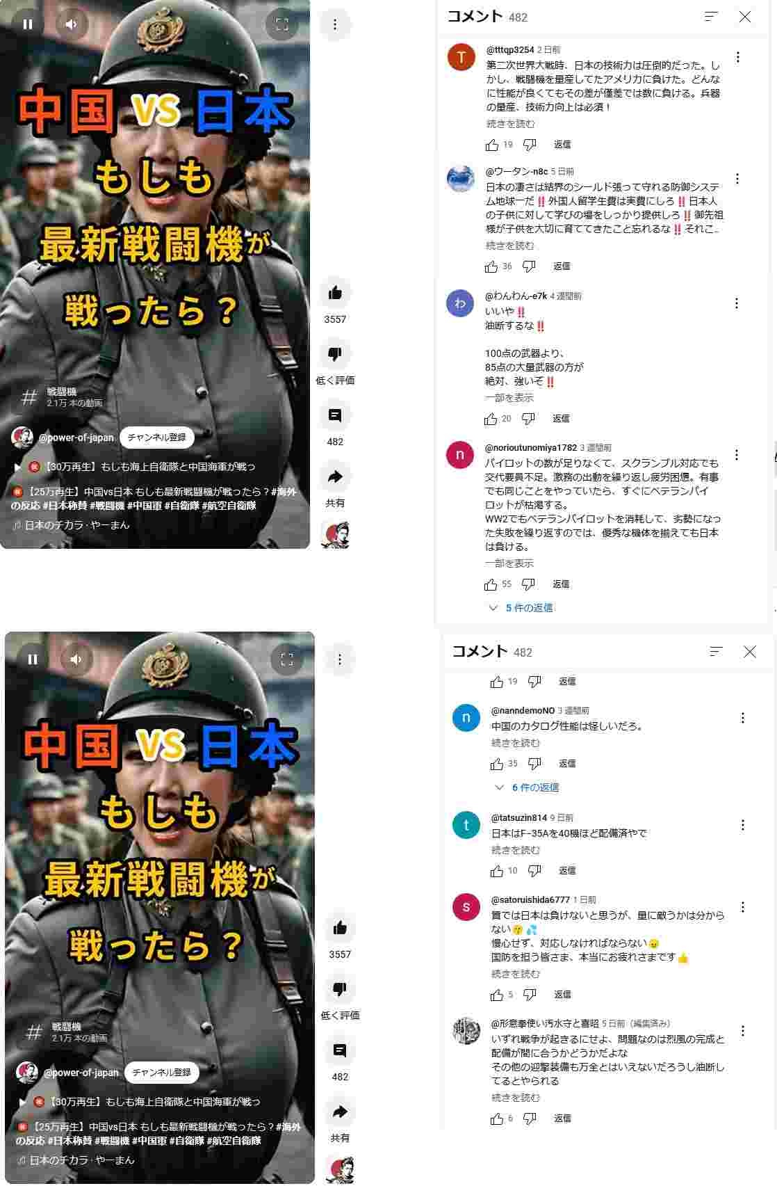 日本人「中国vs日本の戦闘機、質では日本が勝ってるが、量に敵うかは分からない🤔…引き分けか」