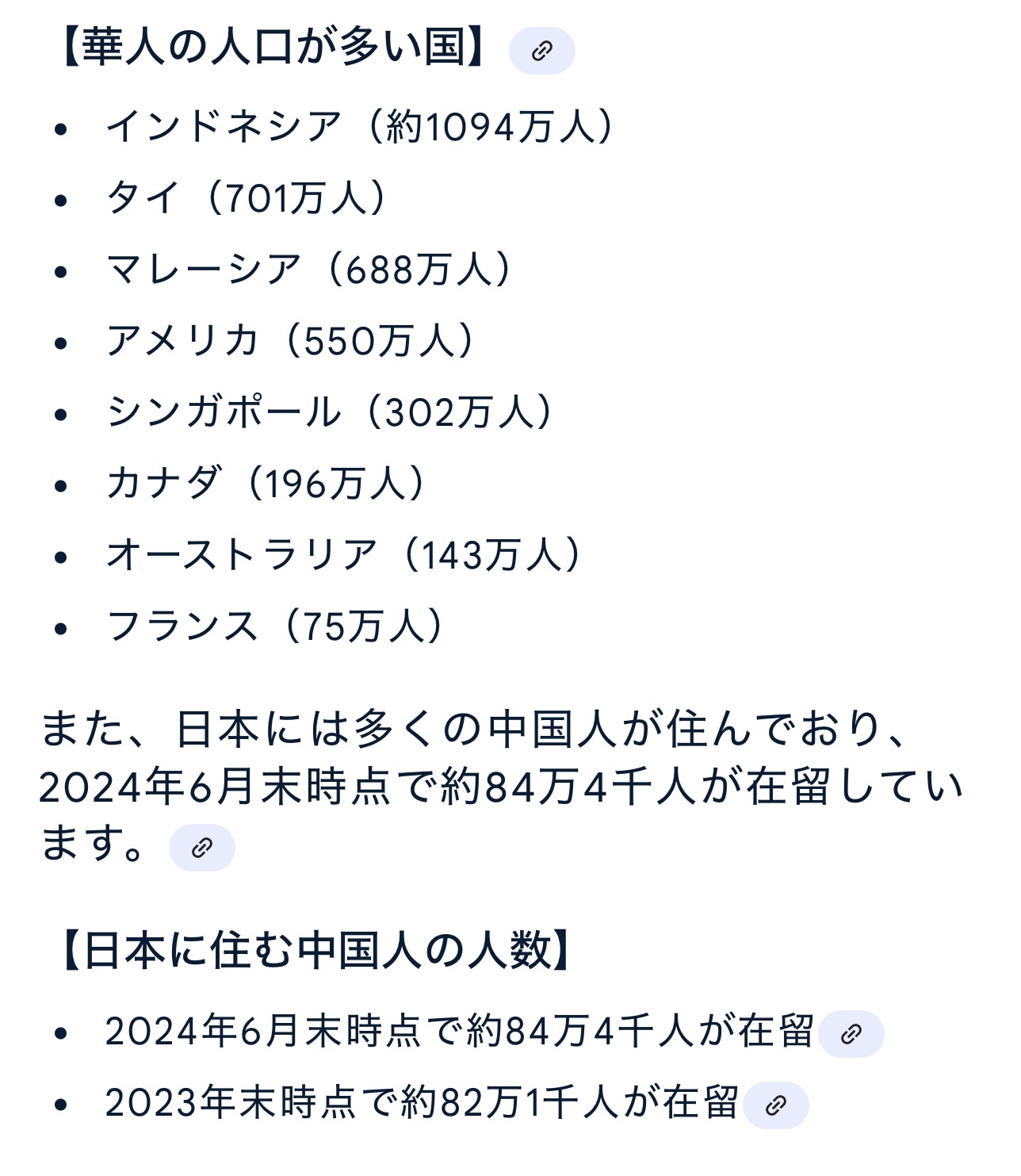 それ帰化人(日本国籍だから日本人)は含んでいないし日中ハーフ(当然日本人)も入ってない、純粋に外国から来てる中国人の数。