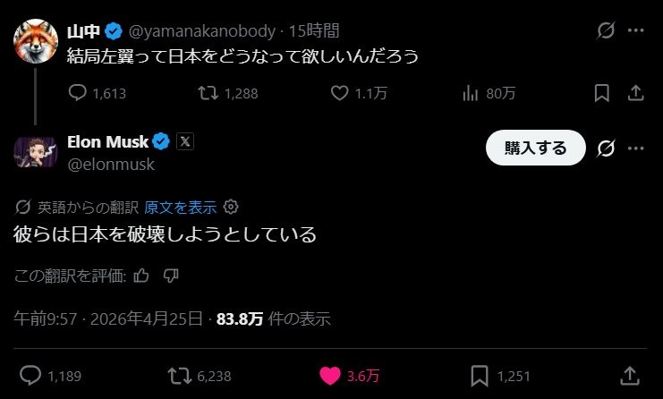 日本人「結局左翼って日本をどうしたいんだろう」イーロン「左翼は日本を破壊しようとしている」