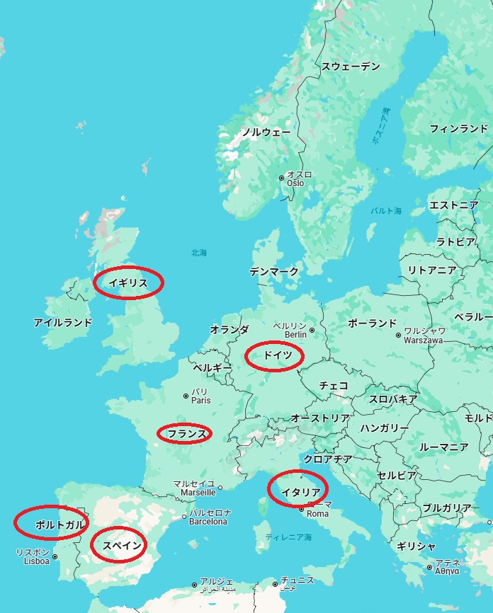 赤い丸の方は所謂列強なだけ、ポルトガルが意味分からんが