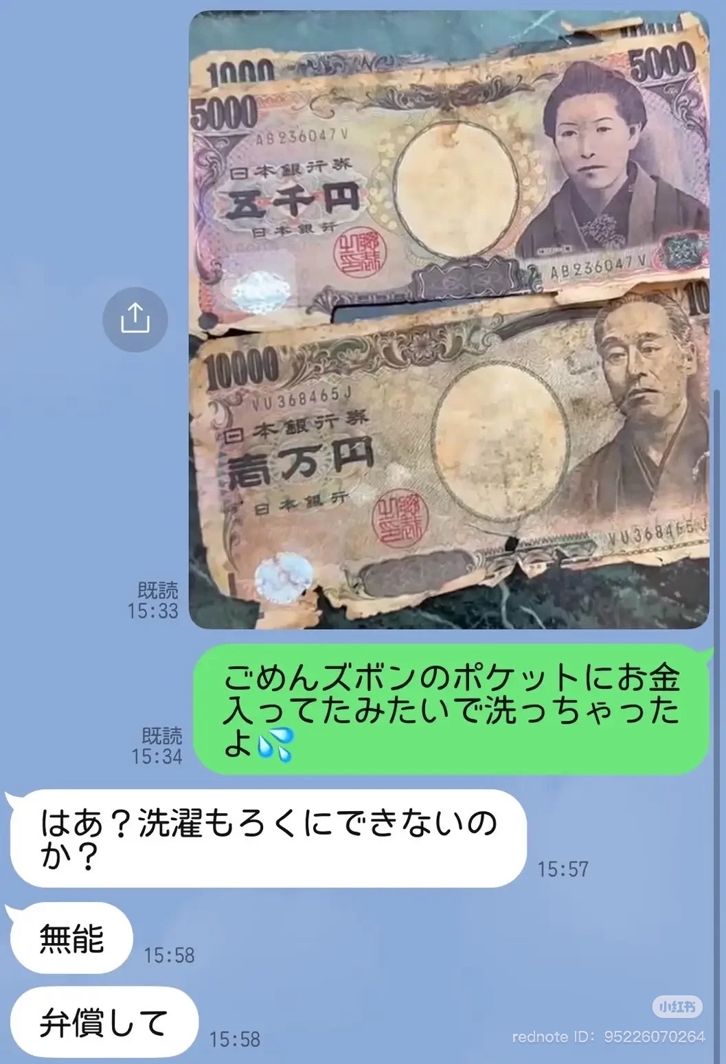 洗濯したくらいじゃお札はこんなにボロボロにならない