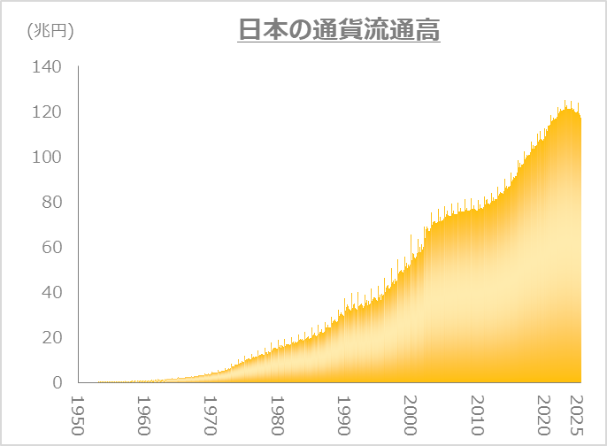 しかしこうしてみると安倍黒田が流通量増やしまくった結果インフレが起きたのがはっきりわかるね