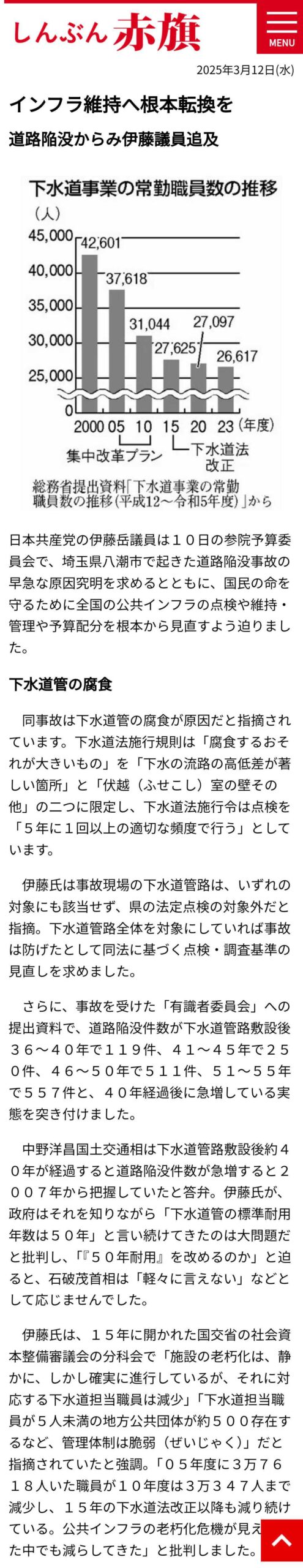 日本政府「え、待って?下水道の従業者がこの20年で4割減ってたんだけど…今後インフラ老朽化は増えるのにどうするのこれ😱」