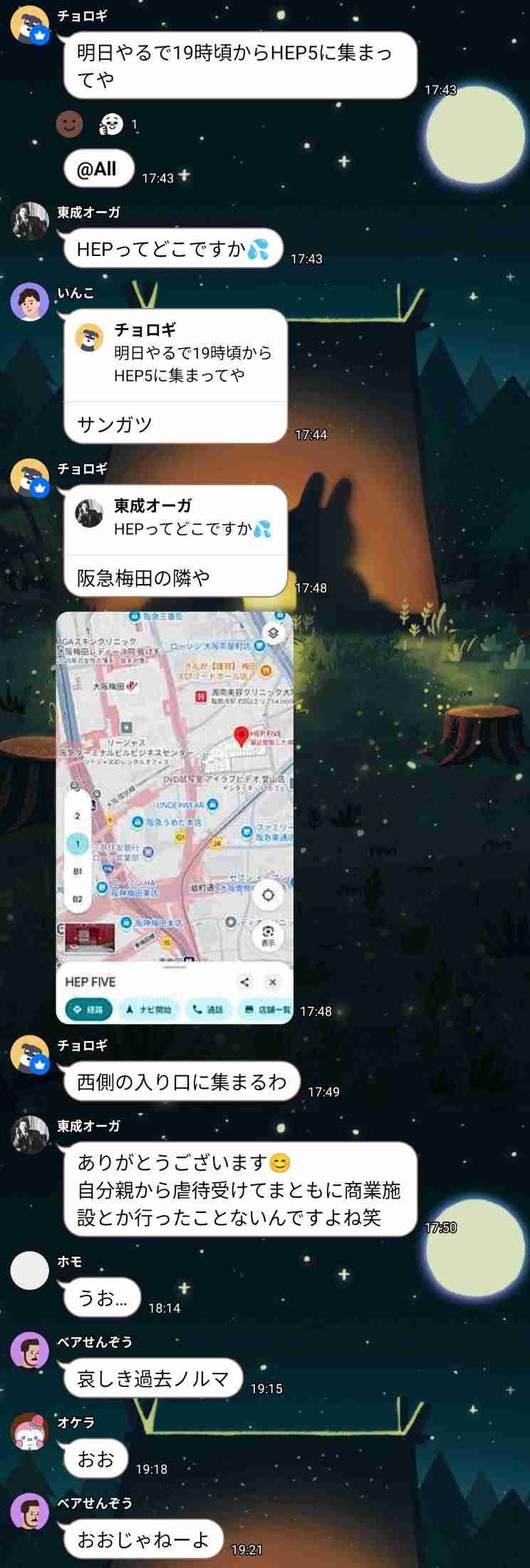 - オープンチャット「梅田オフ会」