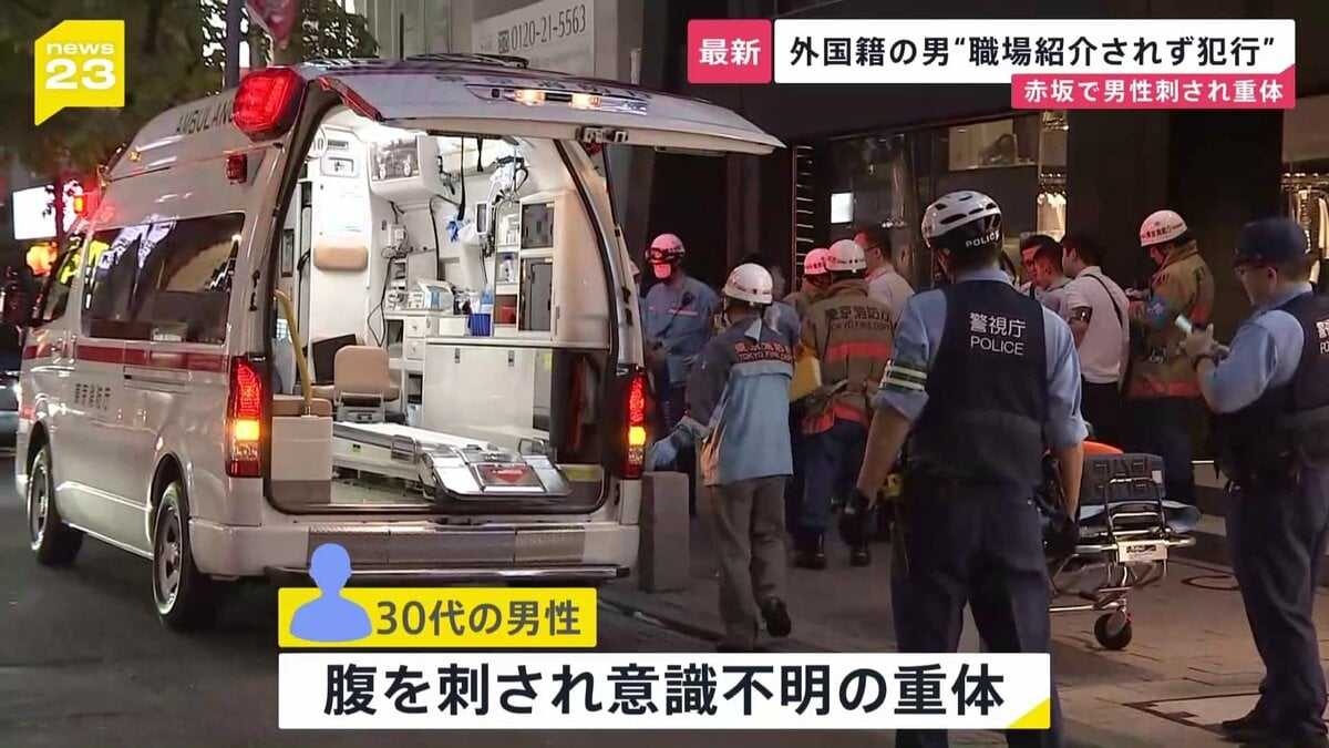 東京・赤坂で30代の男性が包丁で刺され重体です。
