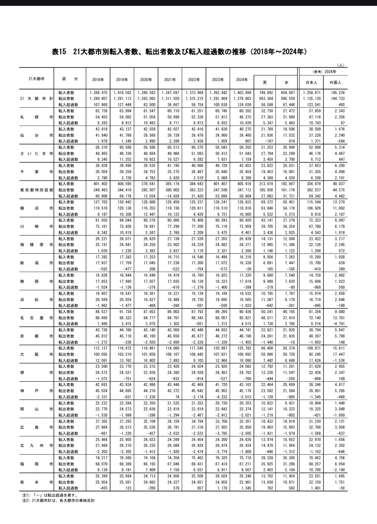 右から2列目の日本人転入超過数がマイナスが日本人集団脱出を意味するのでしょ