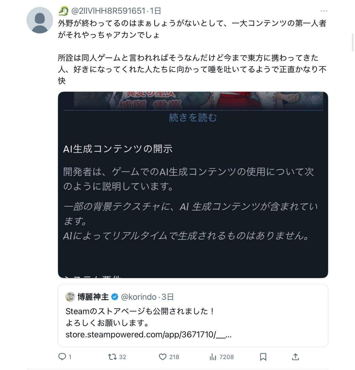 - 未だに本気で追い続けてる東方ファンはAI程度で揺らぐほど信仰心浅くないやろしそんなダメージないやろ