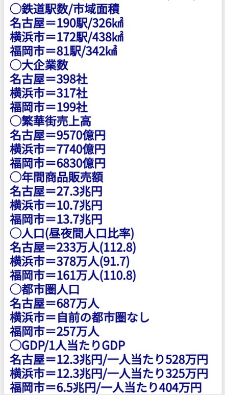 名古屋以下はもちろん、福岡や札幌にも負けてる