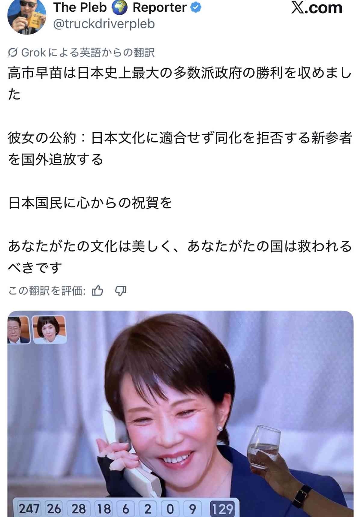 - 高市は移民関連に関しては徹底したホークピジョンやからな