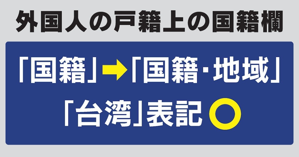 - 戸籍の国籍欄「台湾」表記を可能に 法務省、5月から