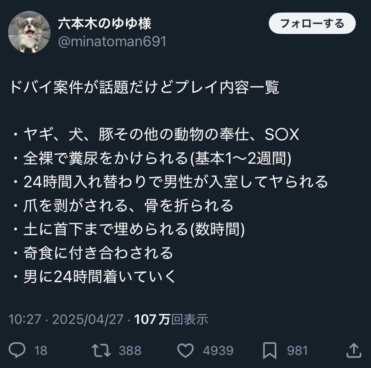 さすがに嘘だろドバイのお金持ちの性癖なんだと思ってんねん