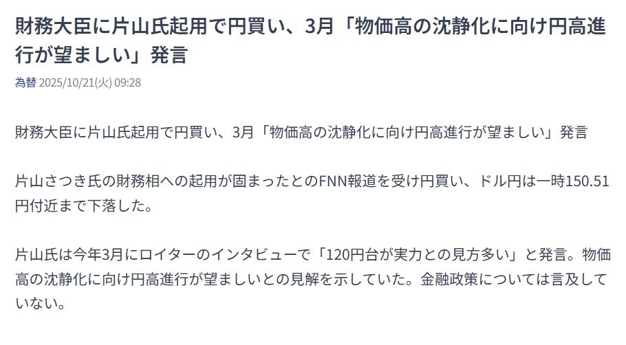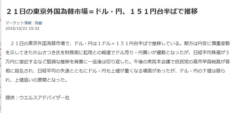 円高で物価高抑制してくれ - 81 : 2025/10/21(火) 16:23:26.34 ID:y+wXNuGe0