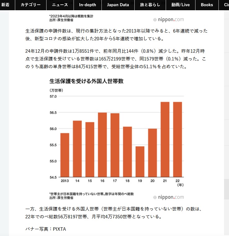 生活保護申請、過去最多25万5897件🥺・・・生活保護を受ける外国人世帯の数は、56万8197世帯😱