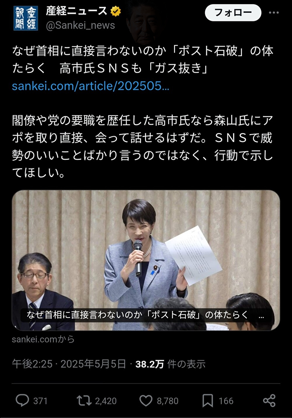 産経は廃刊にした方がいいんじゃね?明らかに一つの政党を応援してるよね