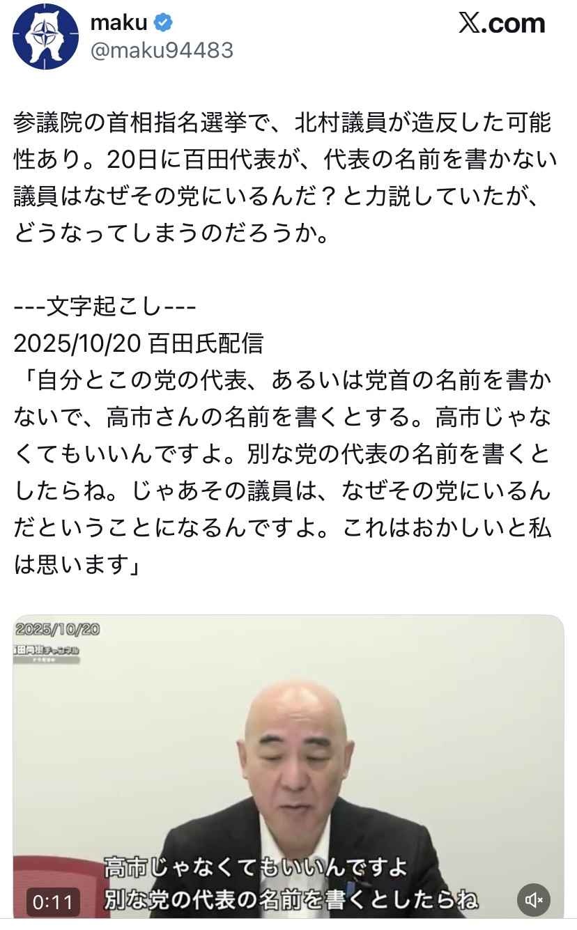自分が所属する党の代表名書くのが保守って事か - 3 : 2025/10/21(火) 16:06:22.87 ID:oi78MhUJM