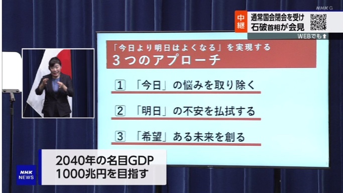 石破総理が緊急会見「2040年に名目GDP1000兆円超え、平均所得5割以上増を実現」