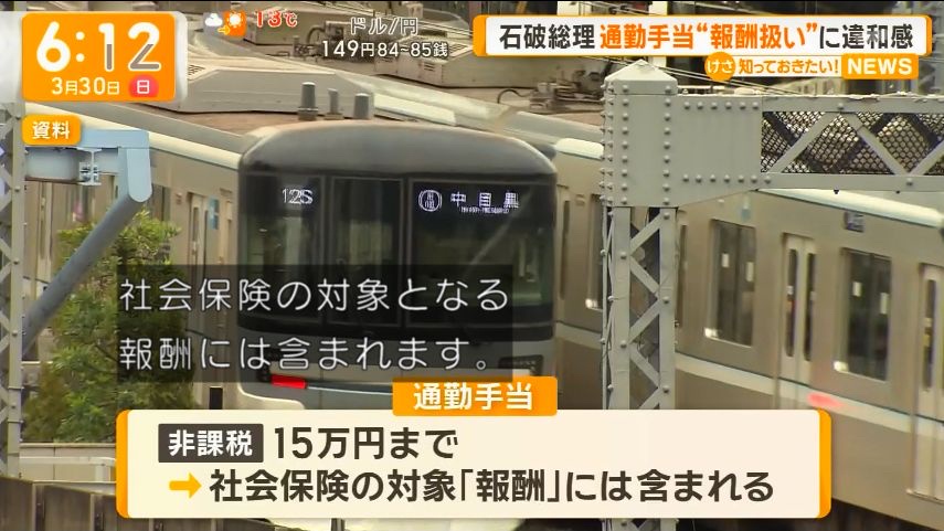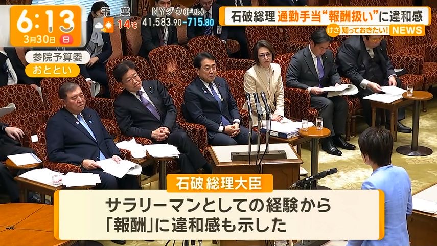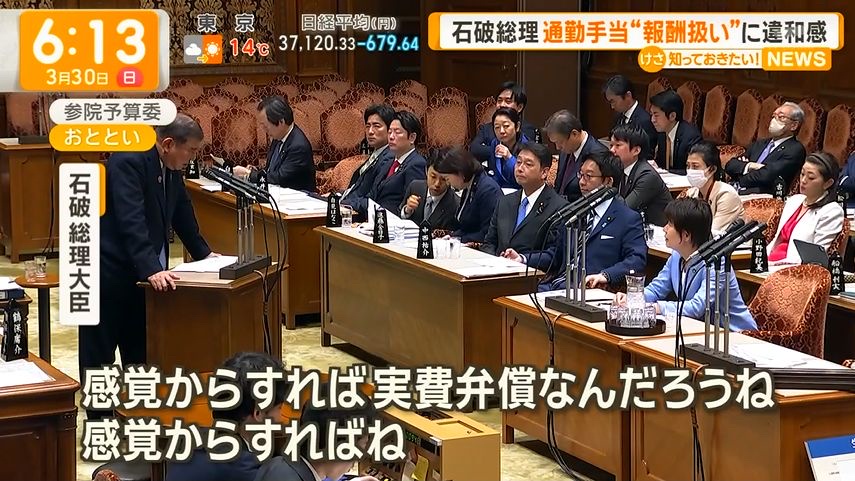 通勤手当は「報酬」か 石破総理 感覚は「報酬?そ、そ、そうですかね」