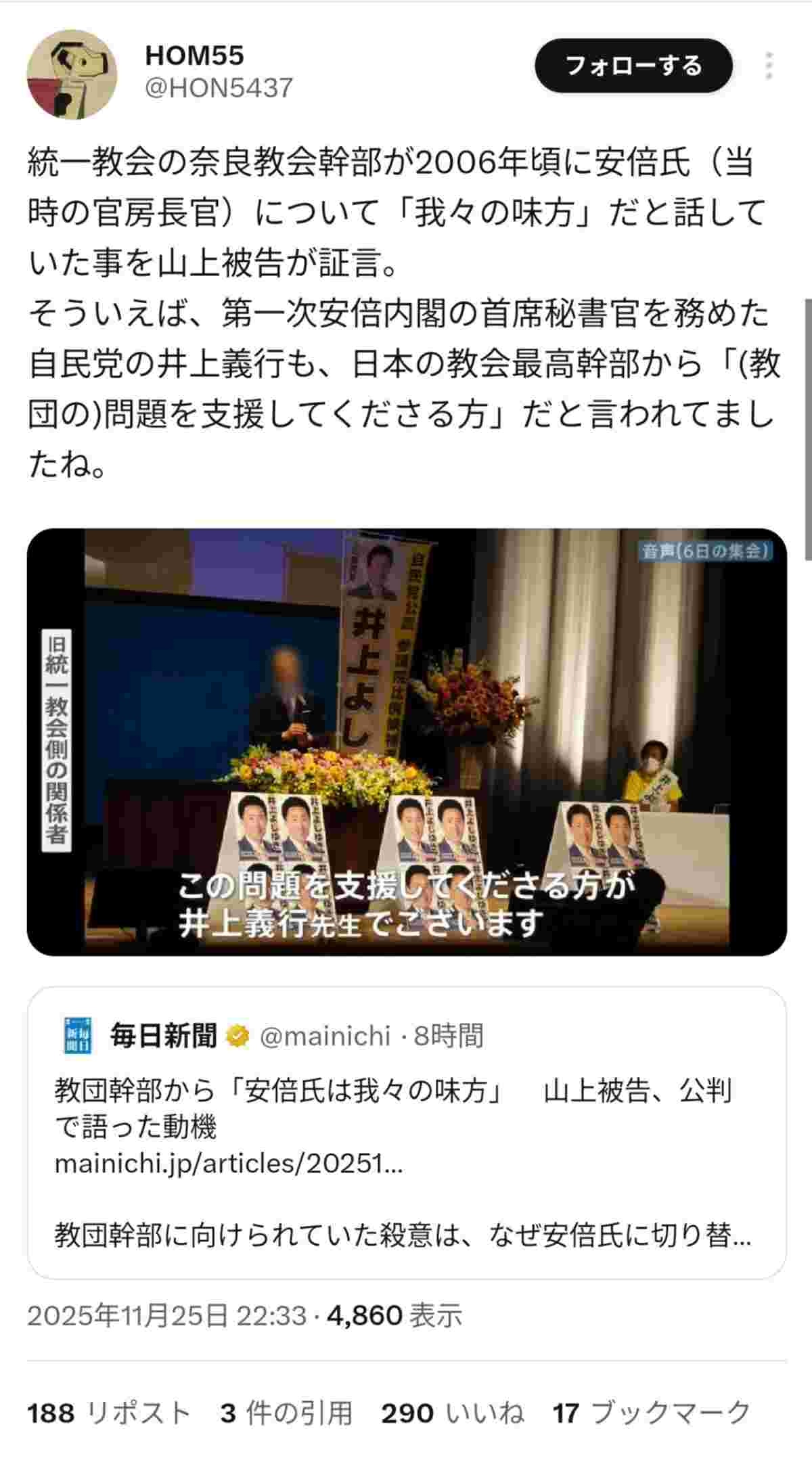 おじいさんの代から統一教会との深い繋がりもある - 35 : 2025/11/26(水) 06:14:11.93 ID:OAhiRi1H0