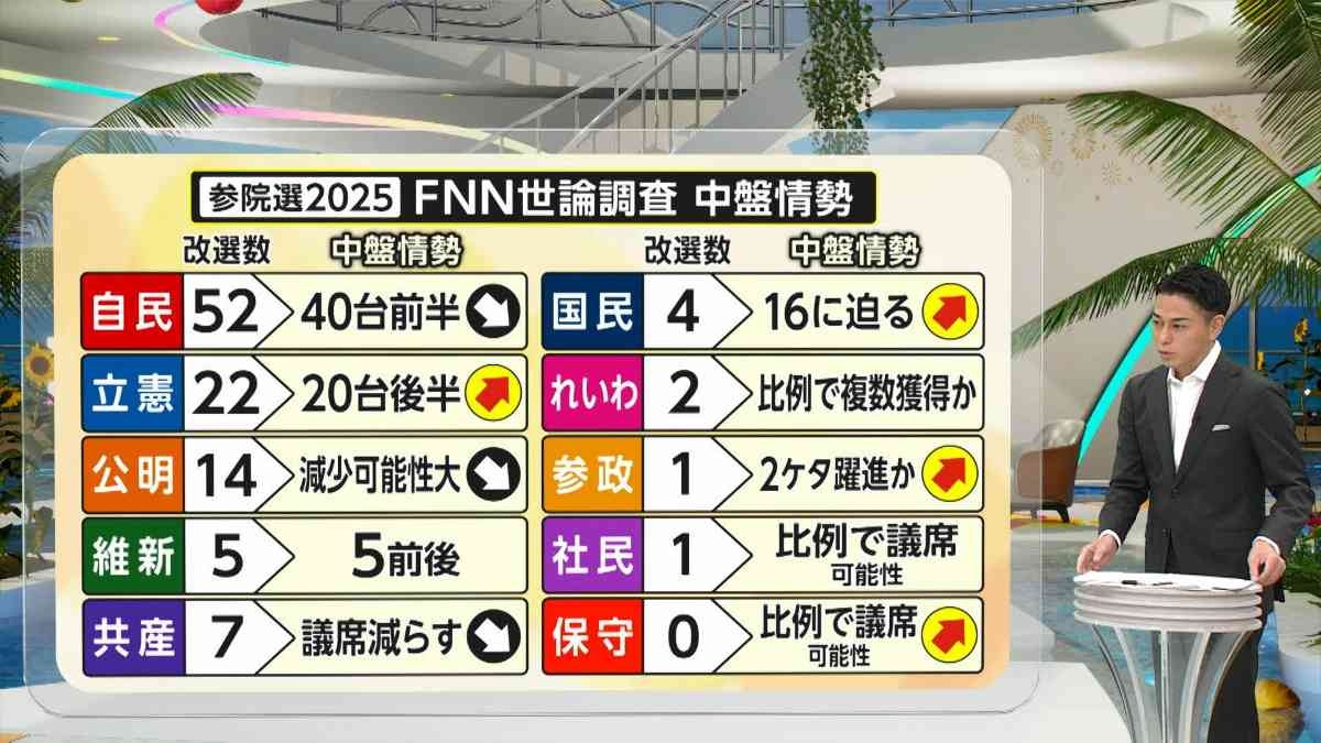 自民は40議席台前半の可能性…参院選中盤情勢・FNN世論調査 「1人区」でも与野党接戦【もっと投票の前に】