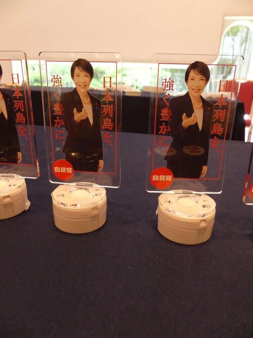 自民党党大会にガチャガチャが登場、超大当たりは高市早苗生ボイス機能が付いたアクリルスタンド