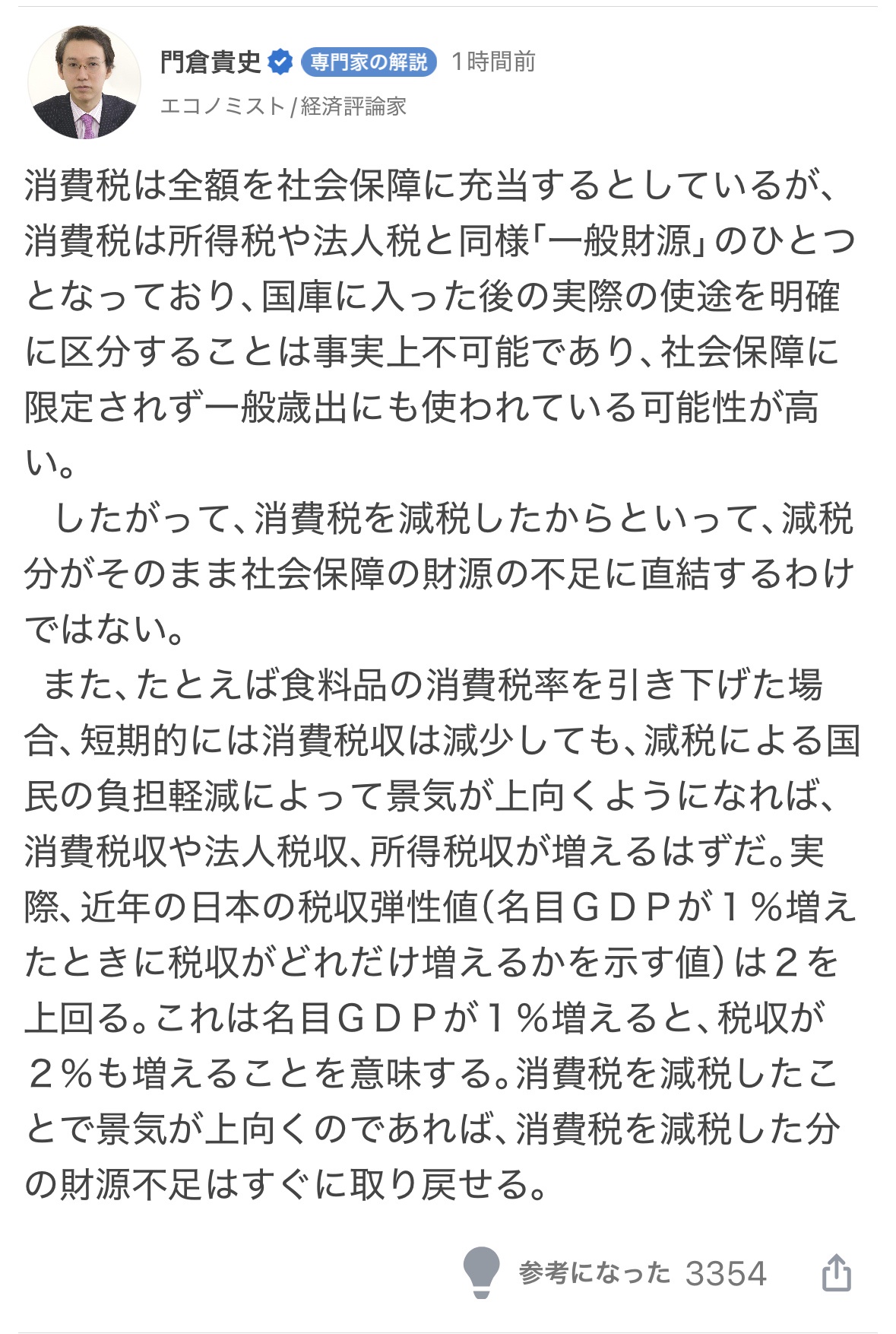 円安で税収増だしエンゲル係数がアレだから食品の消費税減税を言ってるエコノミストはけっこういるな