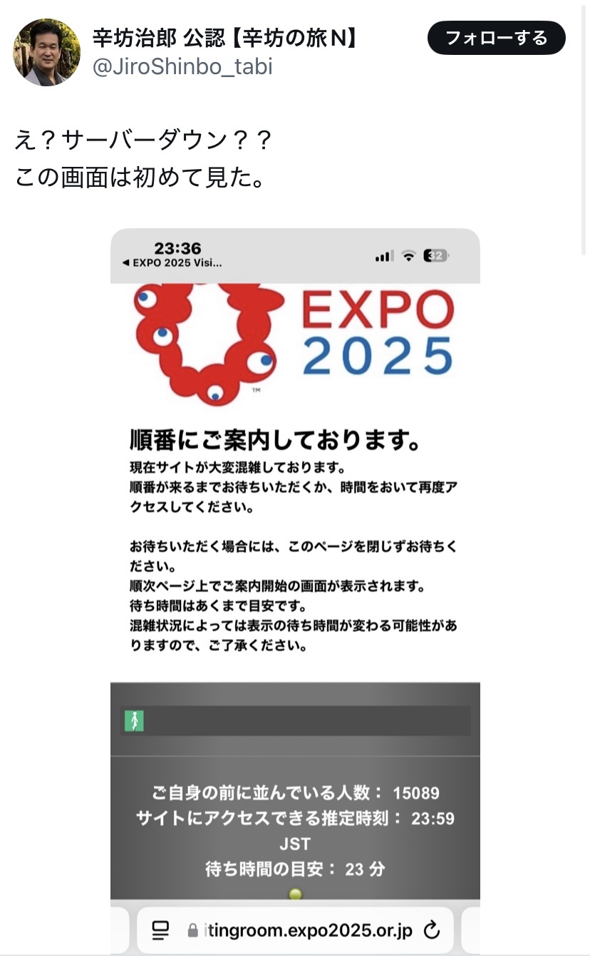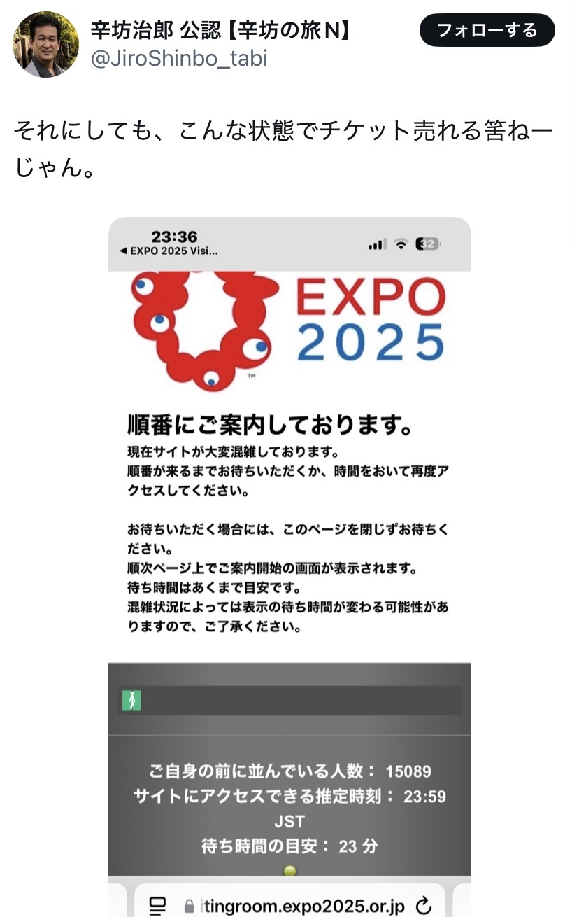 辛坊治郎、万博のサーバーがゴミ過ぎて激怒wwwwwwwwwwwwwwwww