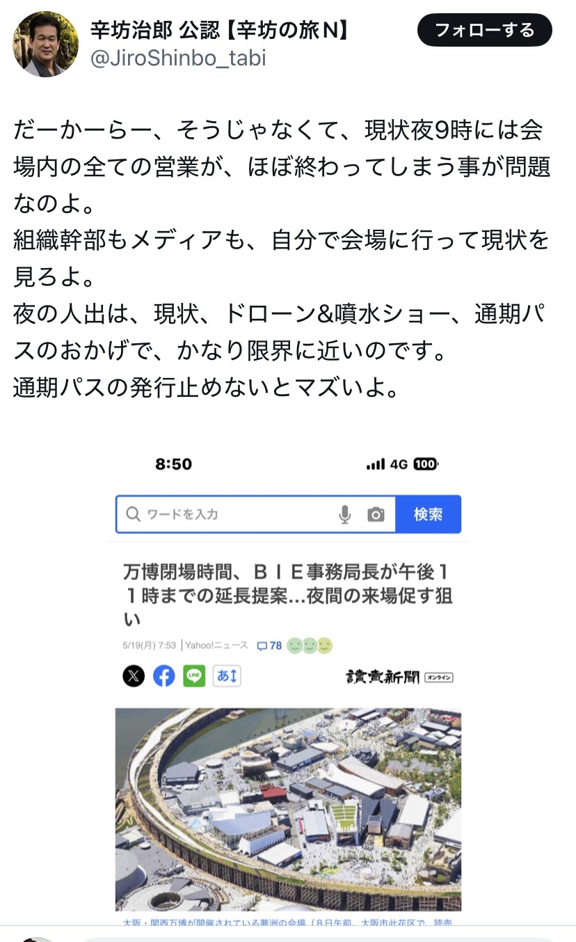 辛坊治郎、万博運営にキレるwwwwwwwwwwww