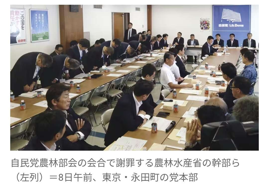 農水省官僚ら「私たちが間違っていました」と自民党議員に頭を下げる