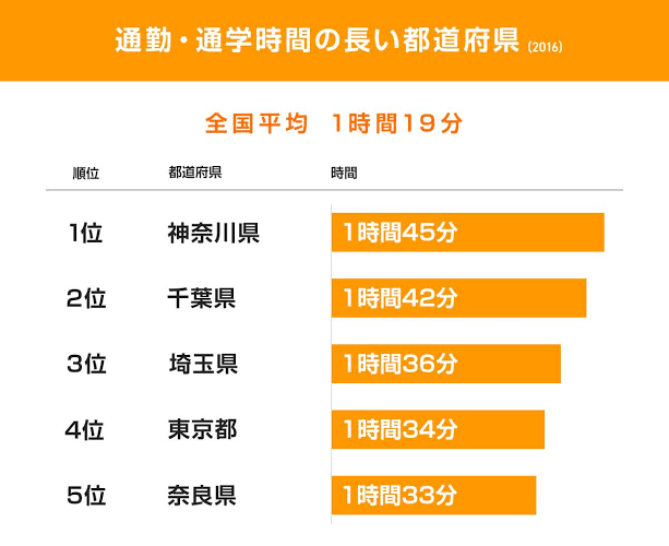 関東民さん(東京神奈川千葉埼玉)、一日に1時間半も通勤時間に費やしてしまう…😭