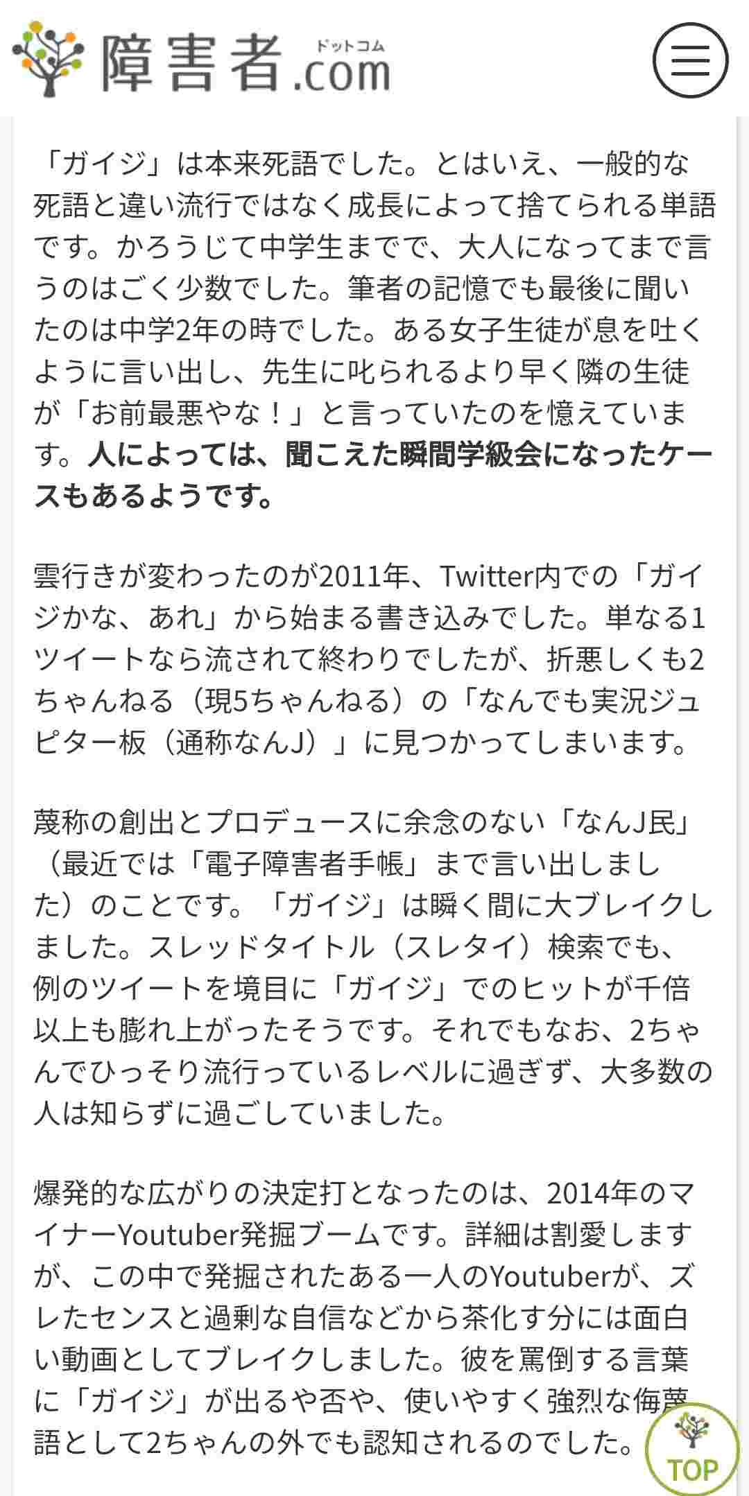 障がい者.com「『ゲェジ』は本来死語でした。雲行きが変わったのが2011年」