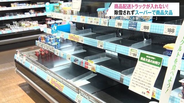 「こちらのスーパーでは、道路状況が悪化しているため、一部の商品が欠品する影響が出ています」★県民生協さくら館 三浦真 副店長