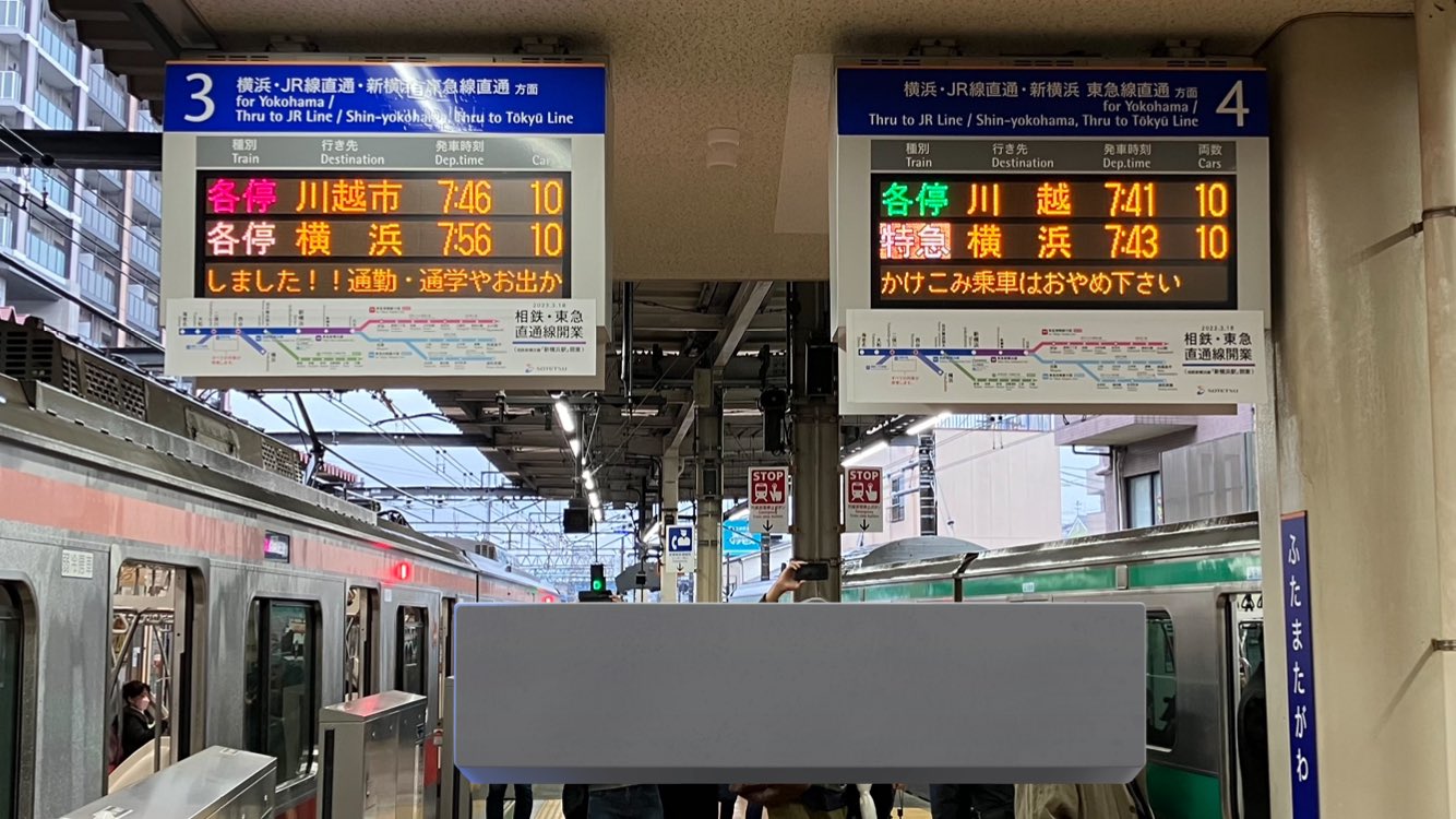 必要なのは「川越行き」という情報ではなく、経由地がどっちかやろ!ようは新宿駅に行くか(JR直通)行かない(東急直通)かだ!
