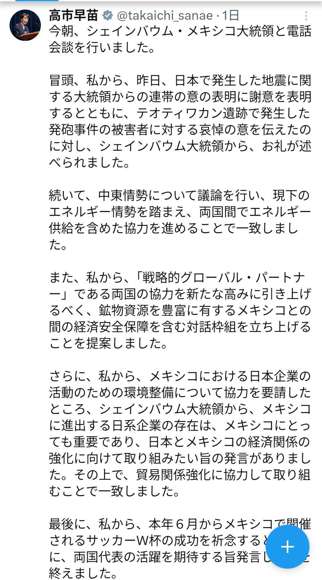 あおまちりん (@amaochi) on X「私から」だらけで話題になってる高市総理のこの文章だけど、このクセ、どっかで見たことあるなって思ったら、やっぱり外務省の文章だったよ。 外務省の公表文章の「高市総理大臣から」を「私から」に変えただけの文章。 そりゃまぁ不自然になるわな。x.com - 41 : 2026/04/22(水) 22:01:49.21 ID:GP+0HA2C0