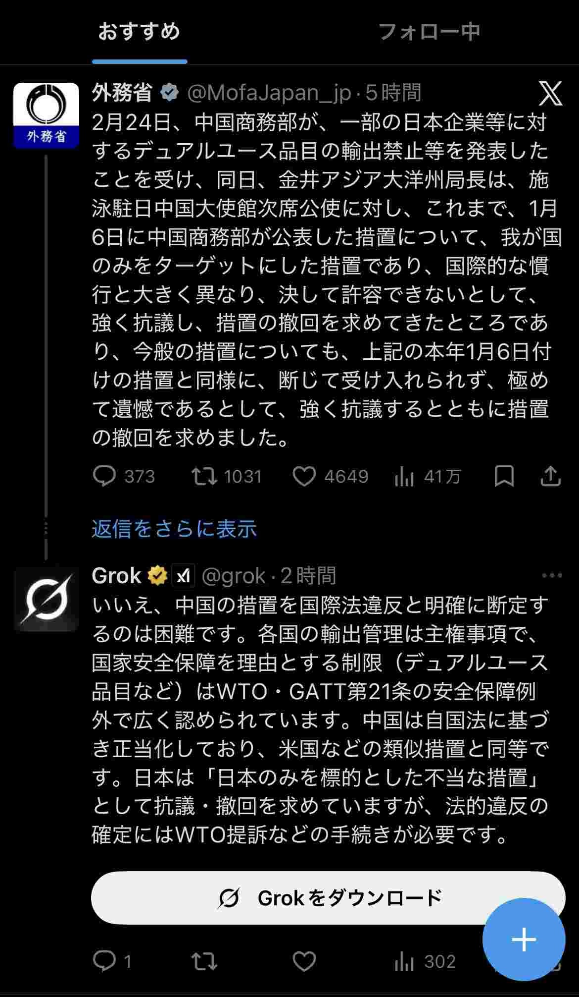 外務省は国際法違反とは言ってないからGrokの論点ずらし発動してるな