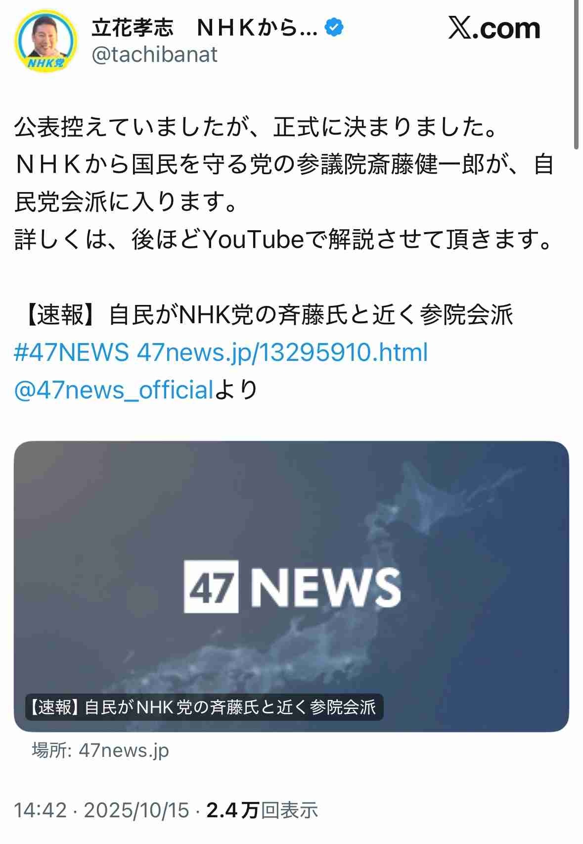 - これって自民党パワーで立花逮捕もなくなるってことある?