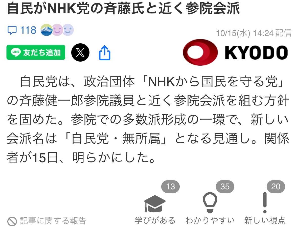 高市自民党、追い込まれすぎてNHK党にまですがる