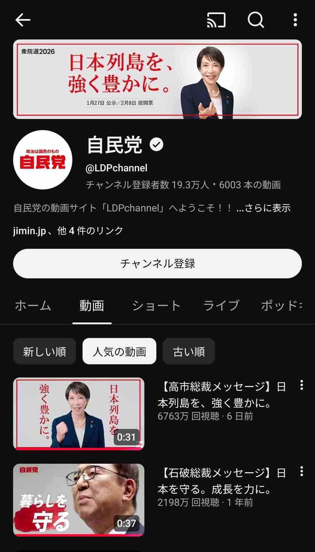 高市自民党の広告動画、6000万再生を突破、日本国民の半数が広告を見ているという事態に😲