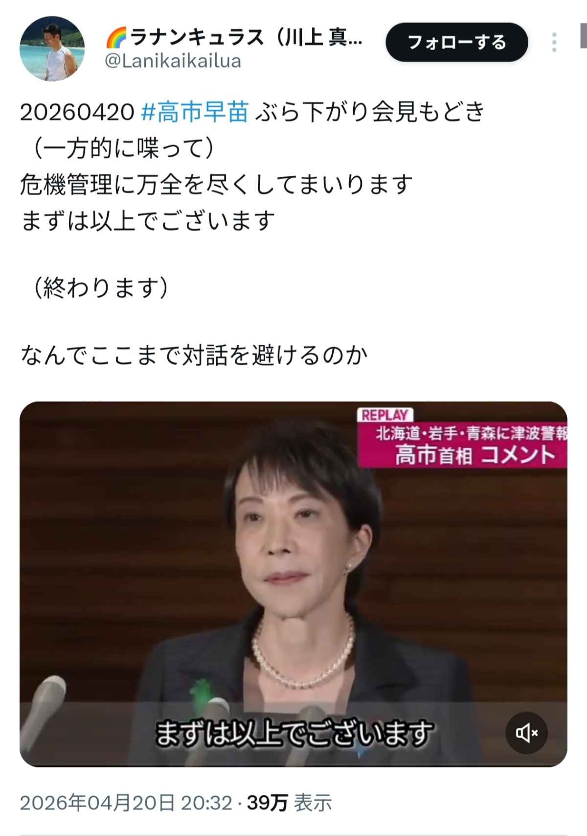 突然の取材にも応じる - 26 : 2026/04/21(火) 06:38:20.16 ID:TF508PNKH