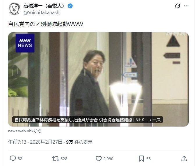 高橋洋一「自民党内のZ別働隊起動WWW」自民総裁選で林総務相を支援した議員が会合