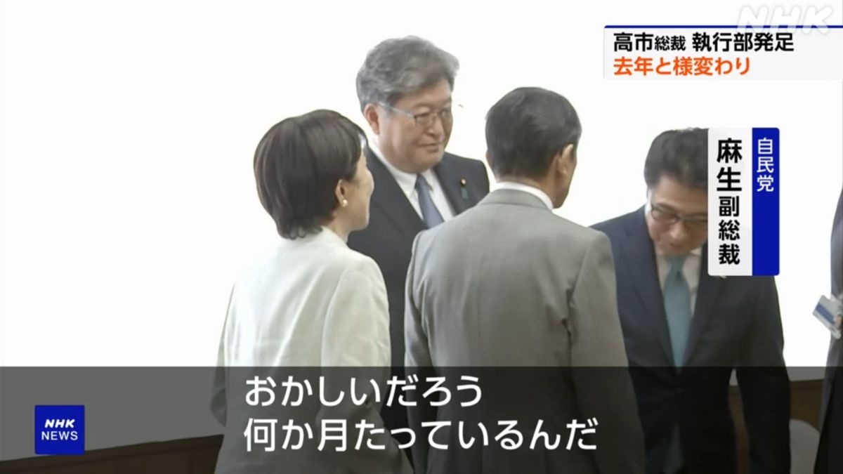 - 高市総理が麻生の後ろについていってオロオロしてるじゃん