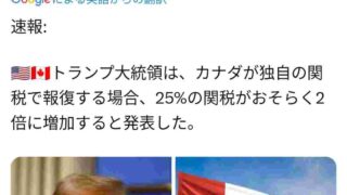 嫌儲 カナダ・トルドー首相「アメリカに報復として25%の関税をかける」