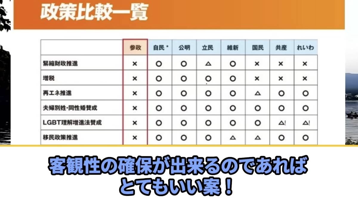 そういうどうでも良いところくらいしかツッコミどころがないってことは参政党に入れるのが今回は正解っぽいな